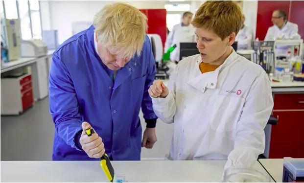 英国首相鲍里斯·约翰逊(Boris Johnson)参观了伦敦北部贝德福德技术园的Mologic实验室。|来源:法新社