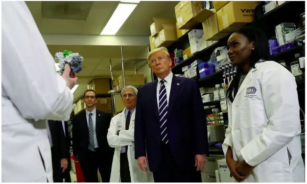 3月3日,美国总统特朗普在马里兰州国立卫生研究院疫苗研究中心。来源:路透社