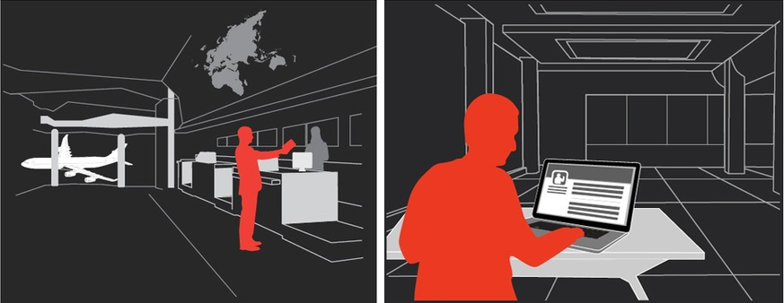这些行为可以在机场、计算机、街道等场景下观察到。