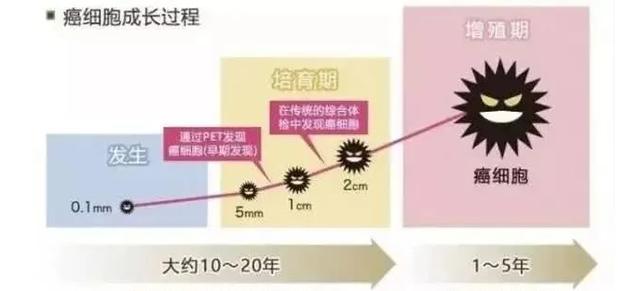 近期的研究发现,肿瘤的发生实际上是非常漫长的,比如,被称为“癌中之王”的胰腺癌,正常胰腺细胞从出现第一个致癌突变到完全转变为癌细胞需要10年时间以上,而从第一个癌细胞到形成癌性肿块平均需要7年。