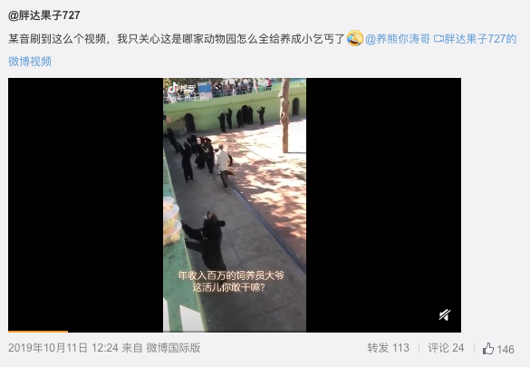 这妖精的名字叫做“熊罴(pí)怪”,俗称黑熊精。他的本体无疑就是亚洲黑熊(Ursus thibetanus)了。 说到熊,你想到的是什么样的熊 提到“熊”,大家脑海中浮现出来的动物是什么样子的呢? 我做了一个(样本量特别少的)调查,结果发现,在我身边的朋友和朋友的朋友之中,认为“熊是棕色的”的人比例是相当高的。 其实棕熊(Ursus arctos)主要分布在欧洲、美洲等地区的高纬度地带,中国能在野外看见棕熊的只有西部、北部的少数几个省份。 市面上能够看到的“熊”造型玩具或者“熊出没”绘本——甚至就说《熊出没》本身吧,里面的“熊”多数都是以棕熊为蓝本进行创作的。可以说,自泰迪熊开始变成流行符号起,“熊是棕色的”就变成了一个奇怪的固有偏见。 当然,我们其实也能找到一些以“黑熊”为蓝本创作的形象,比如熊本县的熊本熊(Kumamon)。 从左到右分别是亚洲黑熊、马来熊、美洲黑熊和熊本熊。绘图:翼狼Elang 不过熊本熊通体漆黑,颈部附近也没有明显的鬃毛,其实更像是美洲黑熊(Ursusamericanus)。 亚洲黑熊的造型则要比它的美洲亲戚“华丽”许多,胸前一道月牙形(V型)的白色纹路和肩颈部明显的长鬃毛,是亚洲黑熊外型上的两大特征。如果放在一起比较的话,美洲黑熊更像是缩小、黑化版的棕熊,亚洲黑熊则和马来熊要更相似一些。 除此之外,与棕熊和北极熊相比,亚洲黑熊的吻部并没有那么突出,而且要稍微显得狭窄一些,这使得它在四肢着地行走时,看起来像是某种大型的犬科动物,也因此获得了“狗熊”的别名。 如果我们单独把亚洲黑熊和棕熊的头骨比较一下的话,还会发现一些非常有意思的差异:亚洲黑熊的犬齿并没有棕熊那么发达,造型上比较钝圆;它的臼齿相对更粗大平整,呈现出更像是草食动物磨齿的特征。这些解剖学特征指向了一个事实——其实在亚洲黑熊的食谱中,植物性食物所占的比例要更大一些。换句话说,这些黑胖子其实是杂食偏植食性的动物。 为了能更好地采食植物的果实,亚洲黑熊其实非常善于攀爬,幼年黑熊还经常会被母熊带到树枝高处以躲避威胁。所以说,遇到亚洲黑熊选择爬树逃生是相当不明智的——装死也不太现实,毕竟没有什么动物会拒绝一顿不用费劲就能获得的蛋白质大餐。 亚洲黑熊主要分布在东亚和南亚气候相对温和的地区内。与生活在高寒地区、站高(体长)动辄超过两米的棕熊和北极熊比起来,体长两米左右的亚洲黑熊只能算是“矮个子”——当然,比起生活在热带的马来熊来说,它们还是算高的,这一点也比较符合生物学上的伯格曼法则(越寒冷的地区动物体型越大,以减少相对表面积,防止热量散失)。 熊孩子的日子并不好过 今天,亚洲黑熊的处境并不理想。 许多人对亚洲黑熊的认知可能来源于一个非常可怕的产业——熊胆。关于黑熊养殖场是怎样将亚洲黑熊关在铁笼子里,以怎样残忍的方式“活熊取胆”的,我们已经反复提过太多次,我也不想再用文字去描述。 除了熊胆生意之外,马戏团曾经也是导致野外黑熊被猖狂盗猎的一个非常重要的原因。盗猎者们通常会用套索、大型捕兽夹等致残致死的陷阱去捕捉成年黑熊,将它们的皮毛、骨骼、熊掌分割销售,而跟随母熊的幼熊被活捉之后,便会被卖到马戏团或者熊胆场去。 由于亚洲黑熊的体格没有棕熊那么庞大,相对更容易控制,而且食性较广,饲养成本低,再加上有着很强的学习能力,曾一度成为马戏团的“宠儿”。就中国而言,捕捉野生黑熊圈养起来作为“娱乐”可以算得上是“历史悠久”了,传说中汉武帝的儿子刘胥就曾在自家养着黑熊,闲来无事就来一场人熊互搏。而现代人则会用各种手段去迫使黑熊学会双腿站立,然后让它们跳绳、骑车、走跷跷板独木桥。 看到这里你可能会产生一个疑问:我们平时在动物园不是经常会看到熊“站”起来向游客们挥手拜拜么?熊难道不是天生就会双腿站立行走的么? 事实上,黑熊的骨骼结构并不适合双足站立以及双足行走。如果再仔细观察动物园中那些“站着”的熊(包括棕熊、马来熊等),你就会发现它们的“站”其实只是挺直了腰板坐着而已,熊屁股都还没离开地面呢。 这种依靠双腿和臀部形成一个稳定的三角形支撑着全身的坐姿并不费劲,但如果熊要挪地方的话,它们一定会先趴下来,采取四肢着地的行走方式,而不是直接站起来走开。 谁愿在痛苦中度过余生 既然提到了动物园的熊,那就再多说一点:熊端坐着向游客挥手乞食的行为实际上是一种不正常、不自然的行为,是由游客投喂造成的行为异常。熊的学习能力十分强,一旦一头熊发现做这个动作能够吸引游客投喂食物,那么很快这一圈子的熊都能学会这一招,然后这种刻板行为就很难纠正过来了。 所以请记住:不要投喂动物!不要投喂动物!不要投喂动物! 这样的乞食与投喂场景屡见不鲜,屡禁不止。 其实在野生状态下,亚洲黑熊也能短暂地用后肢支撑起整个身体,方便爬树,攫取高处的食物,用身体的力量压倒与自己搏斗的对手,或者在树干上留下自己的爪痕作为领地标志等等。但是,它们很难长时间维持着双足站立的姿势。 由于没有长尾巴辅助保持平衡和支撑身体,加上熊的“上半身”要比“下半身”沉重许多,长时间双足站立就已经会对它们的骨盆、髋关节和膝关节造成很大的负担了,更别说要双腿交换迈步甚至是跳跃了。 被从马戏团中解救出来的黑