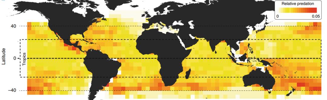 [3] Roesti M, Anstett DN, Freeman BG, Lee-Yaw JA, Schluter D, Chavarie L, et al. Pelagic fish predation is stronger at temperate latitudes than near the equator. Nat Commun. 2020 Dec;11(1):1527.