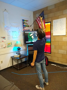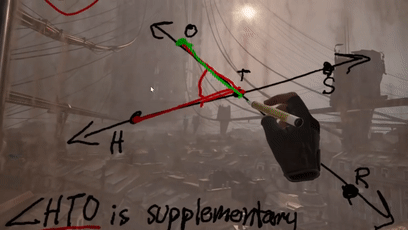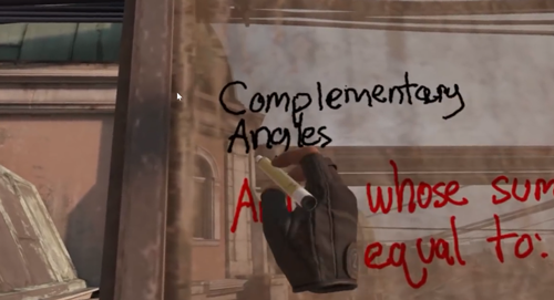 显然,Charles Coomber的VR教学尝试很成功。受到激励的他开始挖掘更多的虚拟现实教学应用,他还在VR软件中讲起了勾股定理,这一次自由度更高,黑板都可以自己涂抹出来: