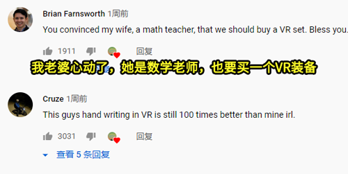 还有人说自己的老婆也是数学老师,看完已经决定买个VR设备(自己也可以玩半条命了):