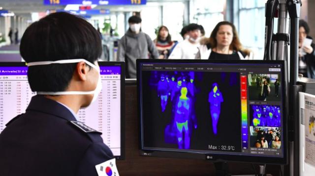韩国一机场检测乘客体温的设备。| 来源:https://www.traveller.com.au/coronavirus-and-air-travel-airport-temperature-check-saw-me-put-in-quarantine-h1lwlx