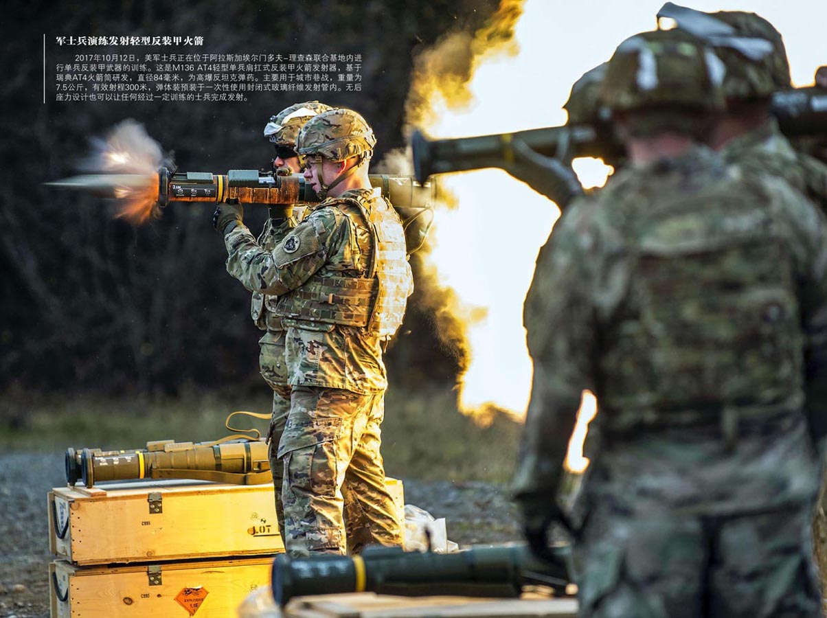 2017年10月12日,美军士兵在阿拉斯加的一个联合基地进行单兵反装甲武器的训练,这名士兵正在发射AT-4。