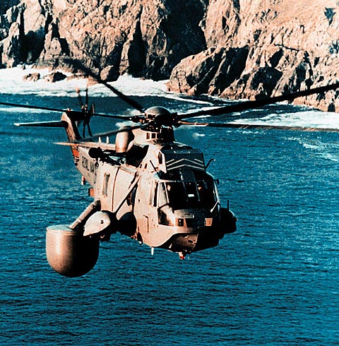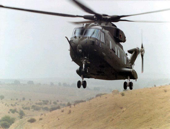 EH101是英、意合作研制的多用途直升机,采用比常规2台发动机多1台的动力方式。乘员为2名,可载35名士兵。主要有海军型、民用型,军用型等型别,英国采购的型号被命名为“灰背隼”。海军型可挂载反舰导弹、反潜鱼雷、深水炸弹等装备。