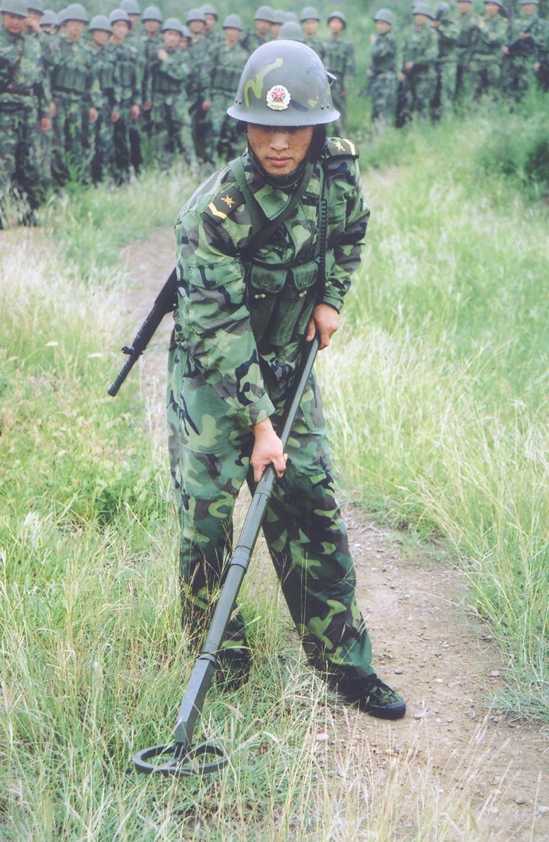 ▲ 我国工兵正在练习使用国产探雷器搜索地雷