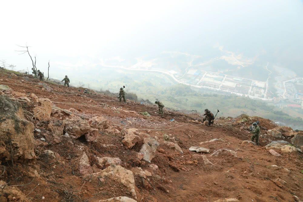 ▲ 扫雷兵在陡峭的山坡上扫雷