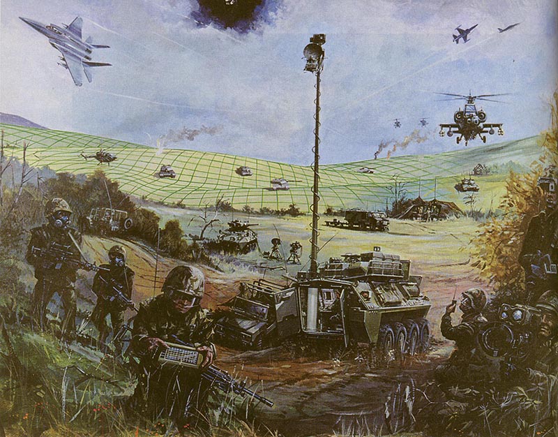 ▲ 信息化战场设想图,每一个作战单元都C3I系统中的节点
