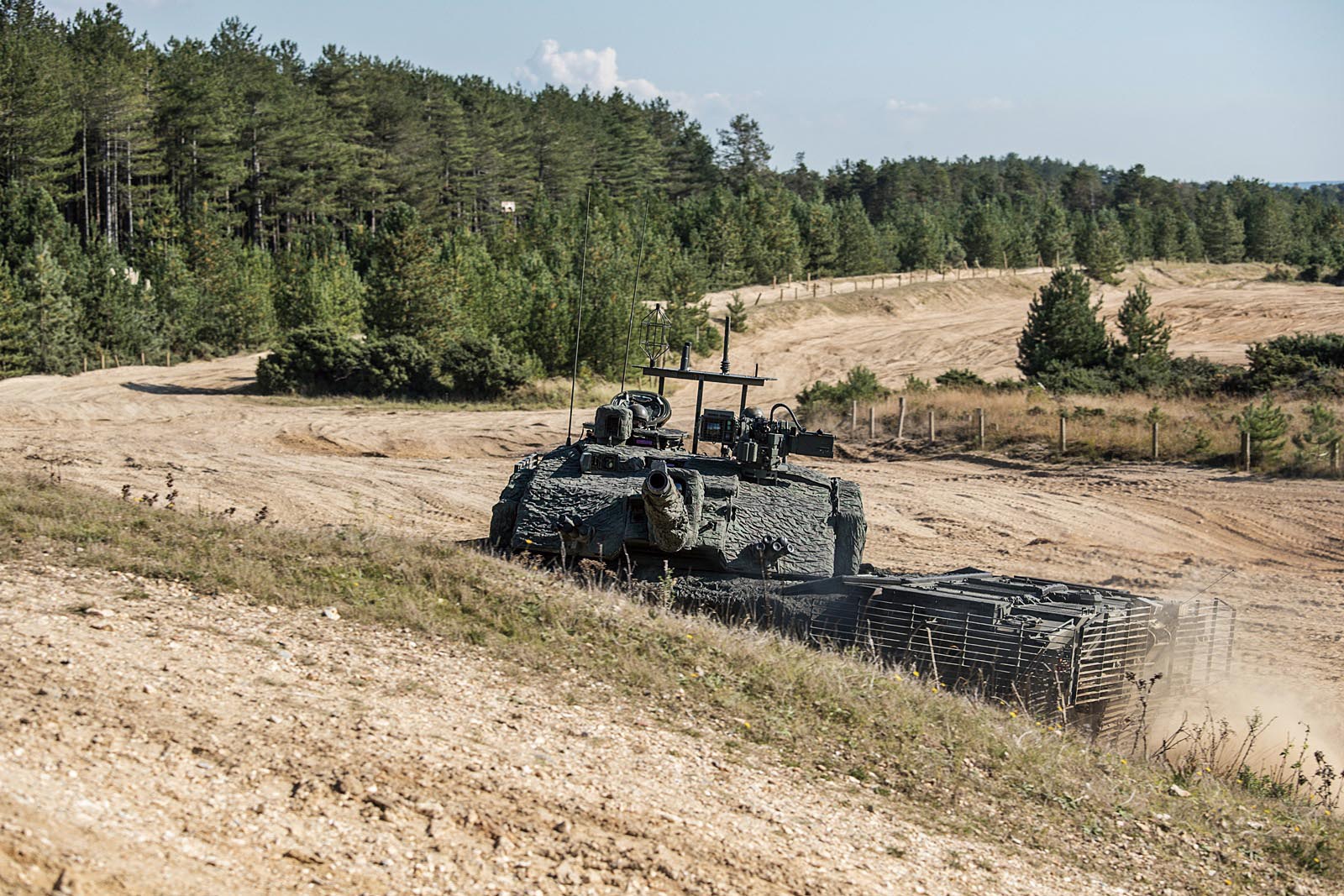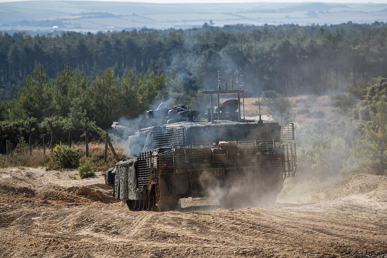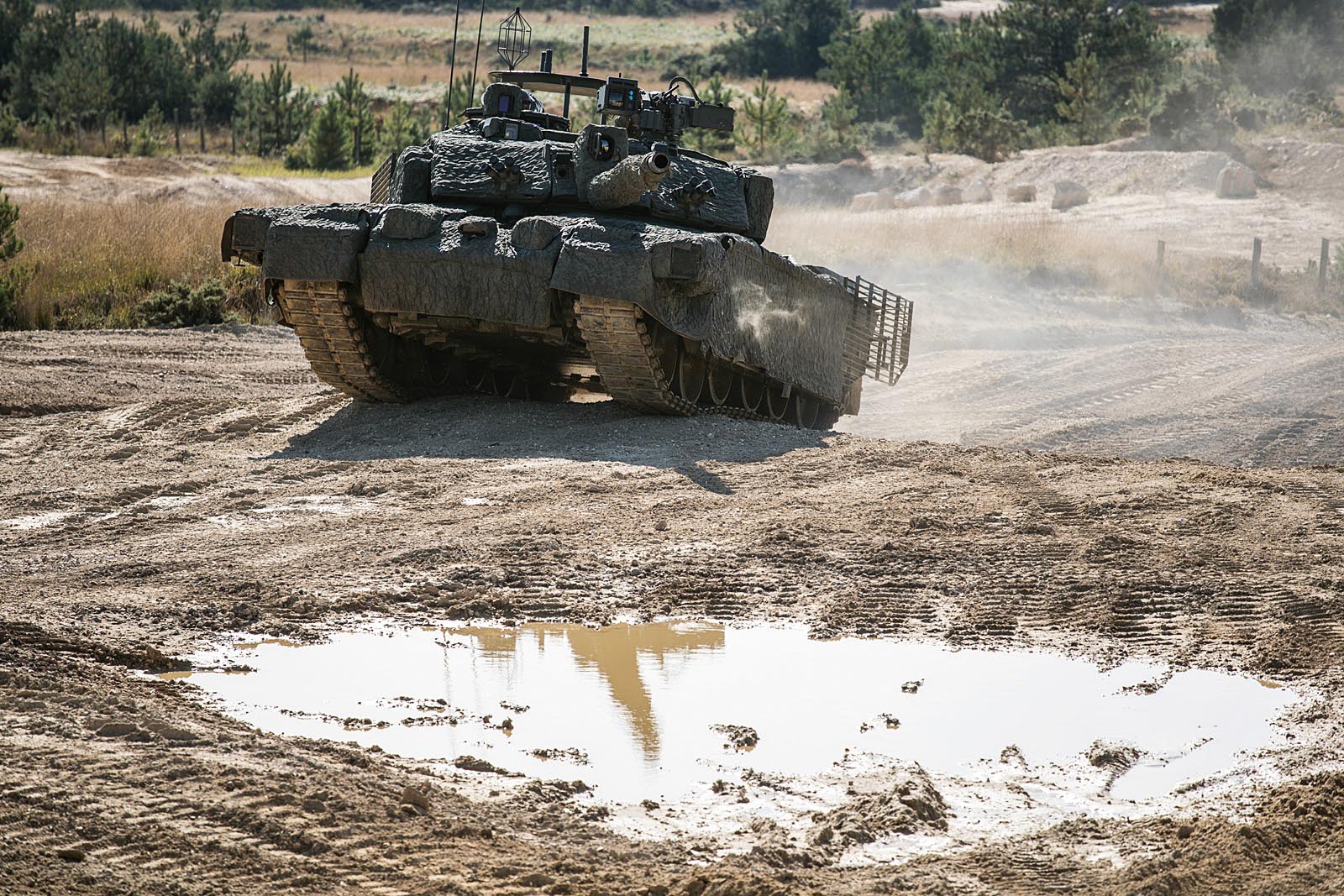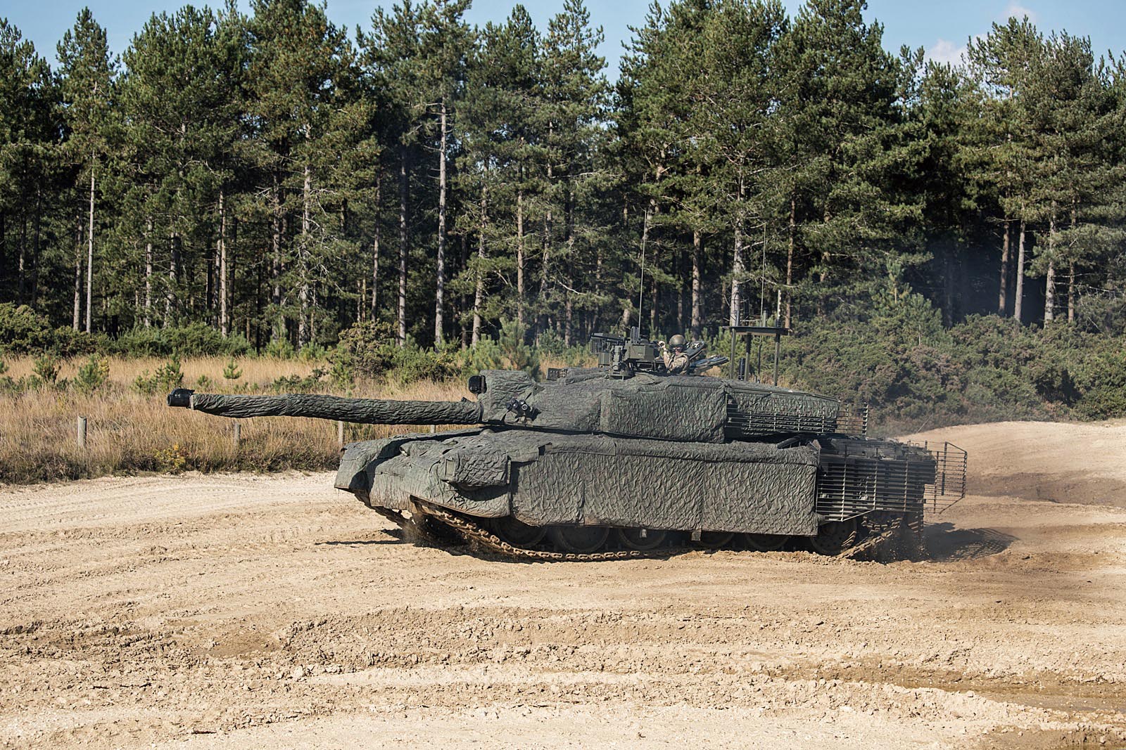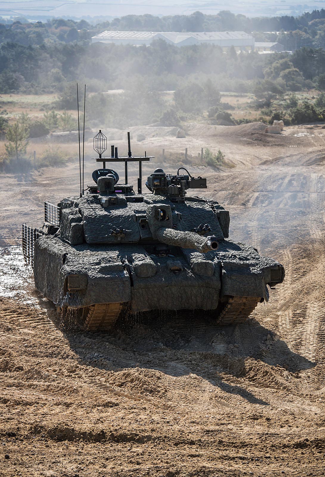 除了测试移动伪装系统,这辆“挑战者”2还进行了TES(Theratre Entry Standard)改装,改装内容包括简易爆炸装置监测装备和ECM电子对抗天线组件,炮塔上则加装了“强制者”遥控武器站。