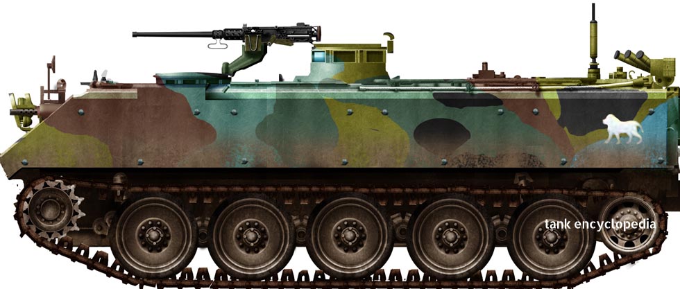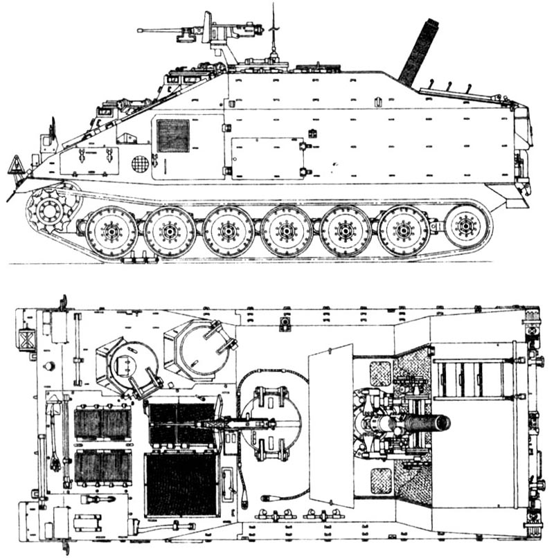 从总体布置上看,采用动力-传动装置前置的布置方案,动力舱位于车体前部左侧,驾驶员位于右侧,其后是车长席。发动机位于第2、3负重轮之间,变速箱位于第1负重轮处,主动轮在前,诱导轮在后。