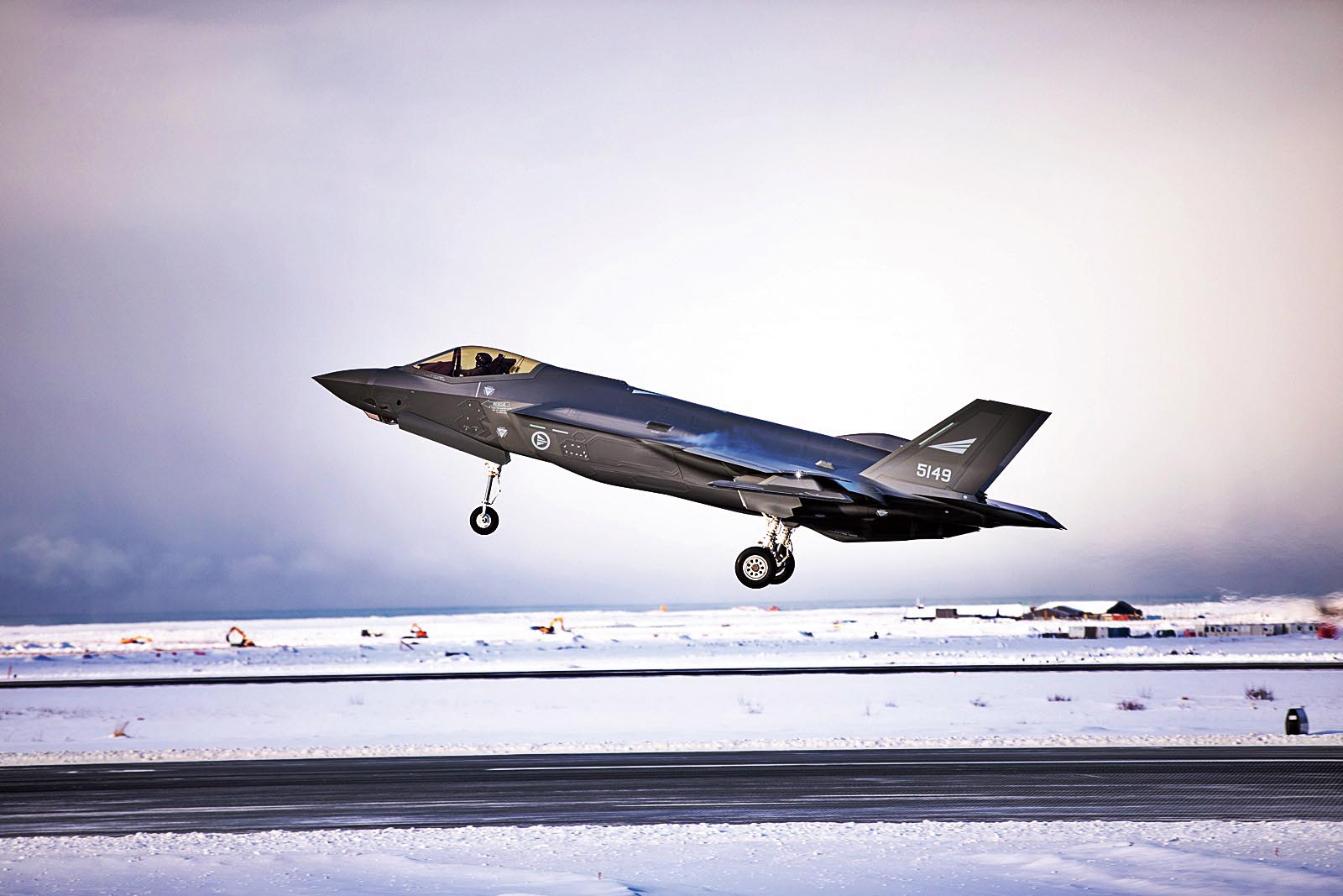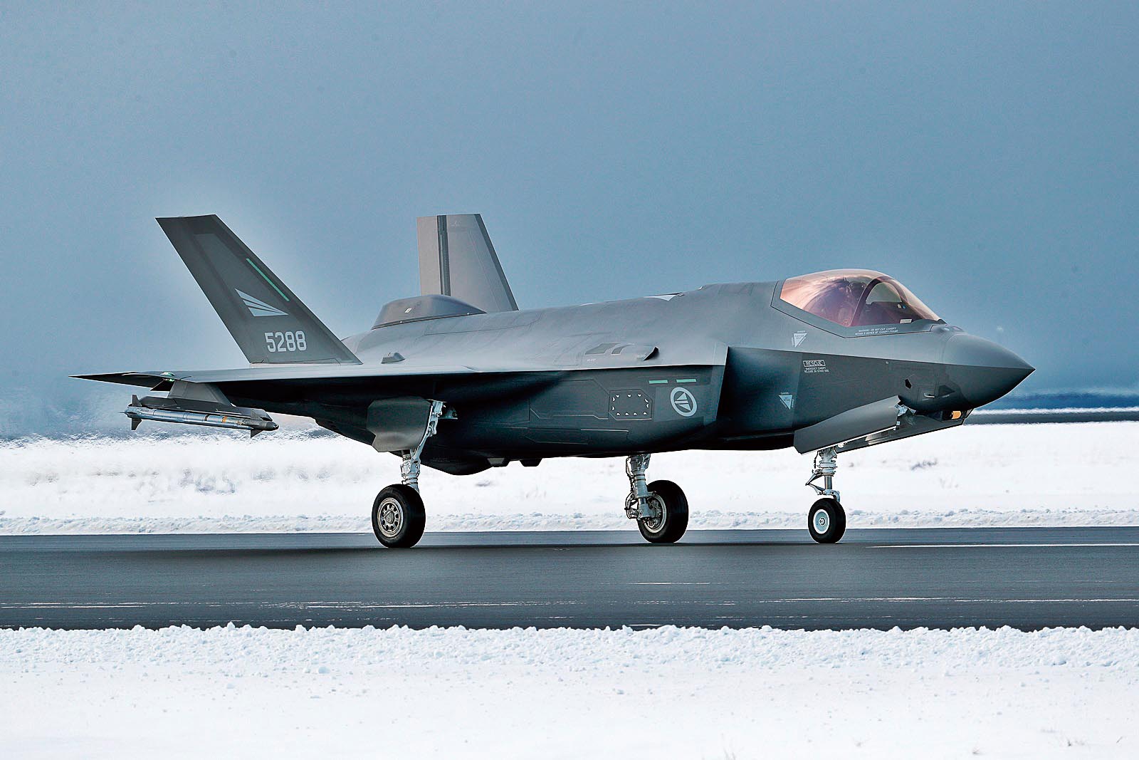 ▲ 在跑道滑跑的挪威空军F-35A战斗机
