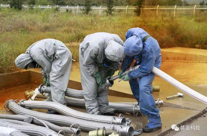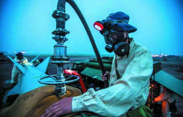 ▲ 太原卫星发射中心的工程师处理火箭燃料