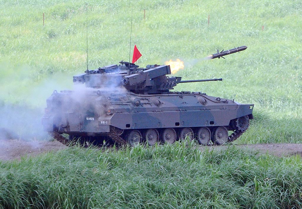 ▲ 日本89式步兵战车发射79式反坦克导弹。