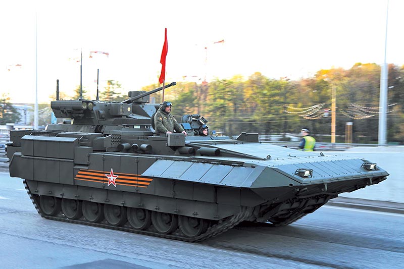 ▲ 2015年胜利节阅兵式上首次亮相的俄罗斯T-15“阿玛塔”步兵战车。