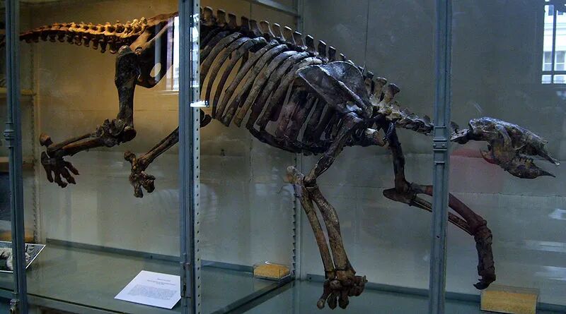 美洲大地懒(Megatherium americanum)骨架,它的体型与大象接近。图片:LadyofHats / Wikimedia Commons