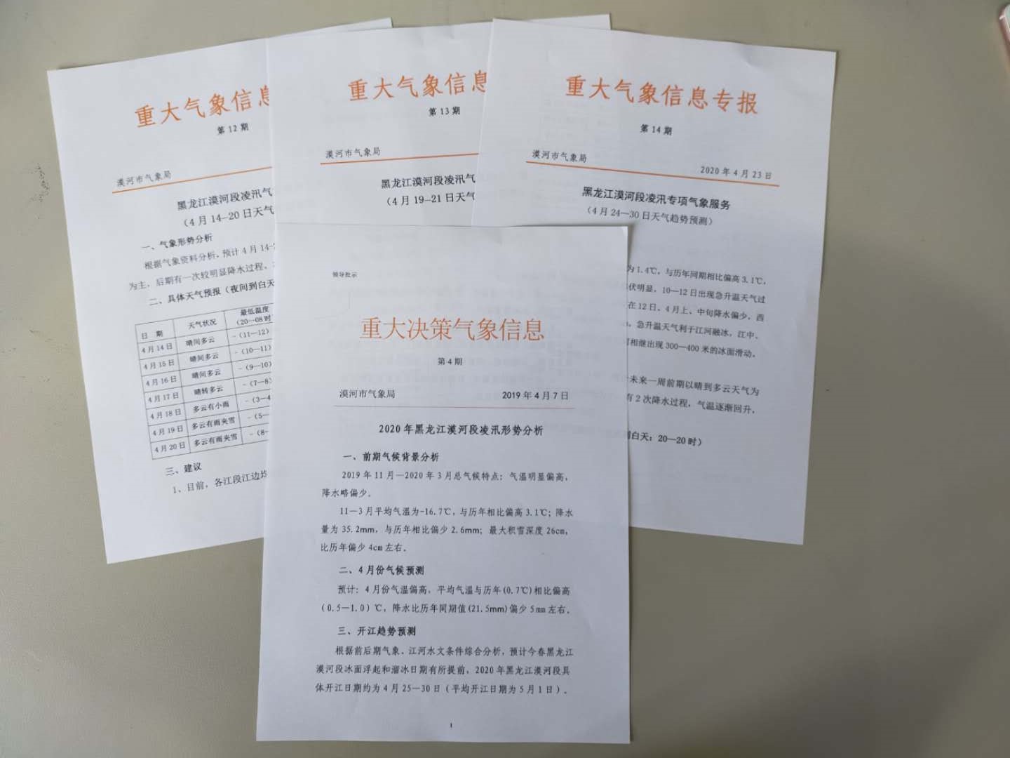 在4月13日、17日、23日,气象部门发布了《黑龙江漠河段凌汛气象服务专报》,明确指出:天气条件对融冰极为给力,开江将如期而至,黑龙江漠河段全部解冻将在5月1日前结束。