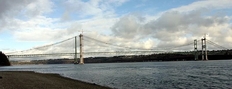 时间过去了半个世纪,1940年3月9日,塔科马大桥在美国华盛顿州西北部海湾建成通车。塔科马大桥是一座与虎门大桥同类型的悬索桥,主跨长度达到了853米,但桥身却只有双向两个车道和步行过道,加起来宽度只有11.9米。