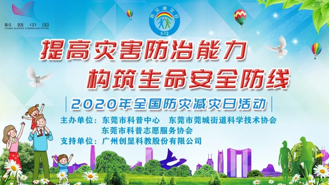 2020年5月12日是我国第12个防灾减灾日,为进一步加强东莞市民的安全防范意识,提高应急避险、自救互救能力,由东莞市科普中心、东莞市莞城街道科学技术协会、东莞市科普志愿服务协会主办,广州创显科教股份有限公司协办,组织广大市民开展以2020年“全国防灾减灾日”为主题的系列宣传活动。