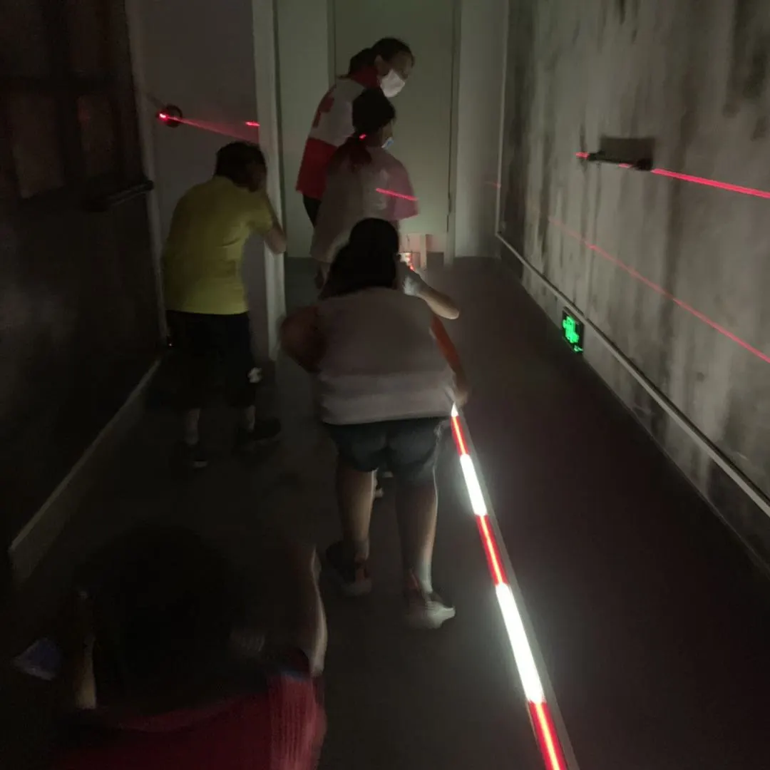 穿过火灾逃生通道时,记得要捂住鼻子匍匐离开,这样做是为了防止吸入浓烟中毒倒地。哪怕只是模拟体验,但严格执行专业安全的自救措施是非常必要的。