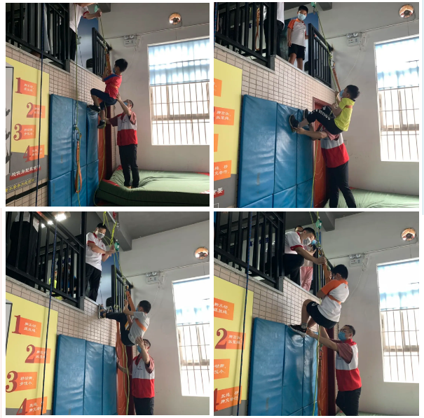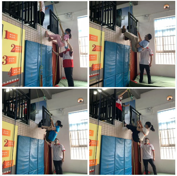 按照电梯1:1设置,这里可以说是小朋友们最最活跃的一个体验区,除了学习到正确的自救方法外,还当了一回勇敢的“高空小卫士”,在工作人员的讲解下体验缓降逃生绳。