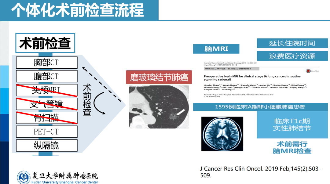 所以早期癌不要做气管镜、不要做骨扫描、不要做头颅磁共振。这样不仅减轻病人痛苦,还可以大大减少术前医药费,所使整个术前检查策略成为个体化的选择。