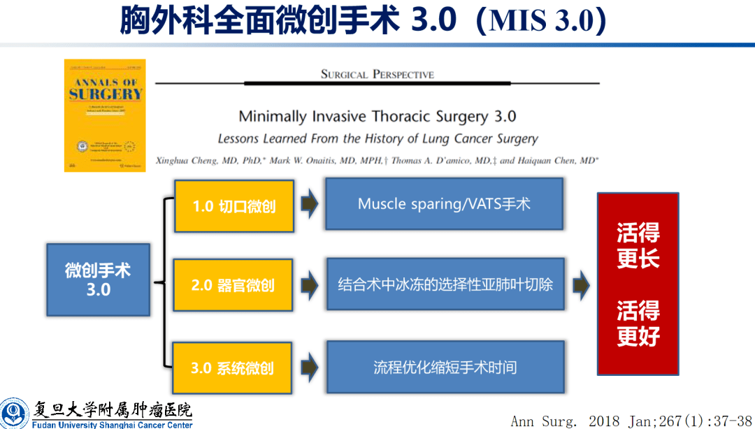 我们的目标是活得长、活得好,而不是简单的比这个孔打三公分还是两公分,这个微创3.0理念是肺癌外科领域一个重大理论和实践的创新。