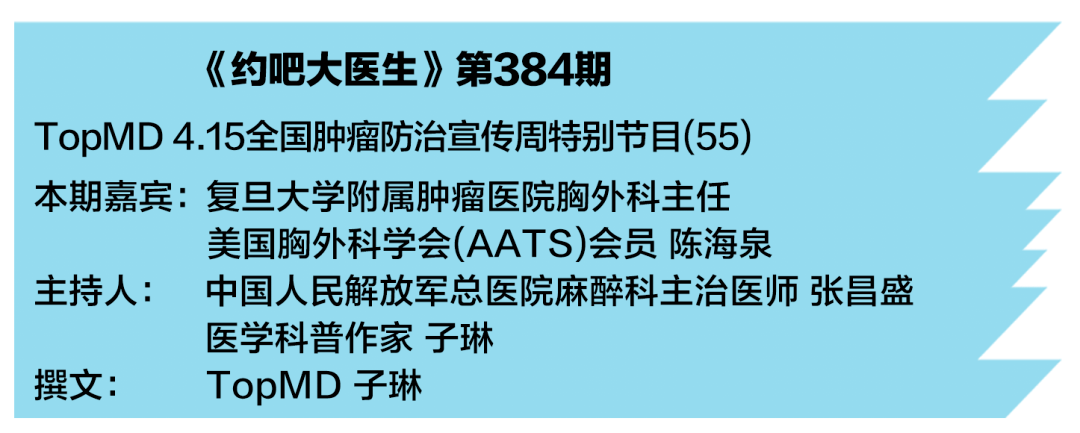 本期节目在TopMD、搜狐健康、搜狐新闻、搜狐视频、腾讯新闻、今日头条、国广健康、健康中国、优酷等10家媒体平台同步直播,在线观看达60w次,请到的这位专家正是全球第一个发现这一问题的专家:美国胸外科协会(AATS)会员、复旦大学胸部肿瘤研究所所长、复旦大学肿瘤医院胸外科主任陈海泉教授。
