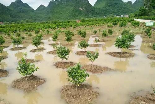 涝害发生时,尽快在果园内开通排水通道,有排水沟的果园,要及时清除沟渠内造成堵塞的河沙、淤泥、干枝落叶等物质,保证排水通畅。对于涝害比较严重的果园,可选择离植株一定距离的地方开设集水池,之后通过水泵等机械工具排出果园。