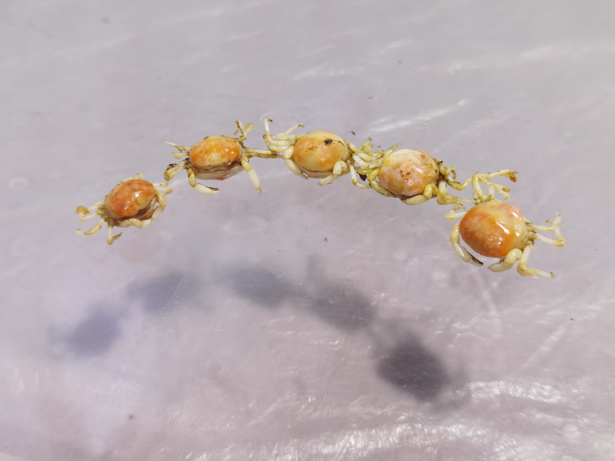 第一,在河蟹养殖业中,当年的河蟹苗谓之“豆蟹”,二龄为“扣蟹”,皆因大小而得名,正所谓“豆扣年华”是也。此豆蟹只是业内诨名,不具有分类学意义,按下不表。