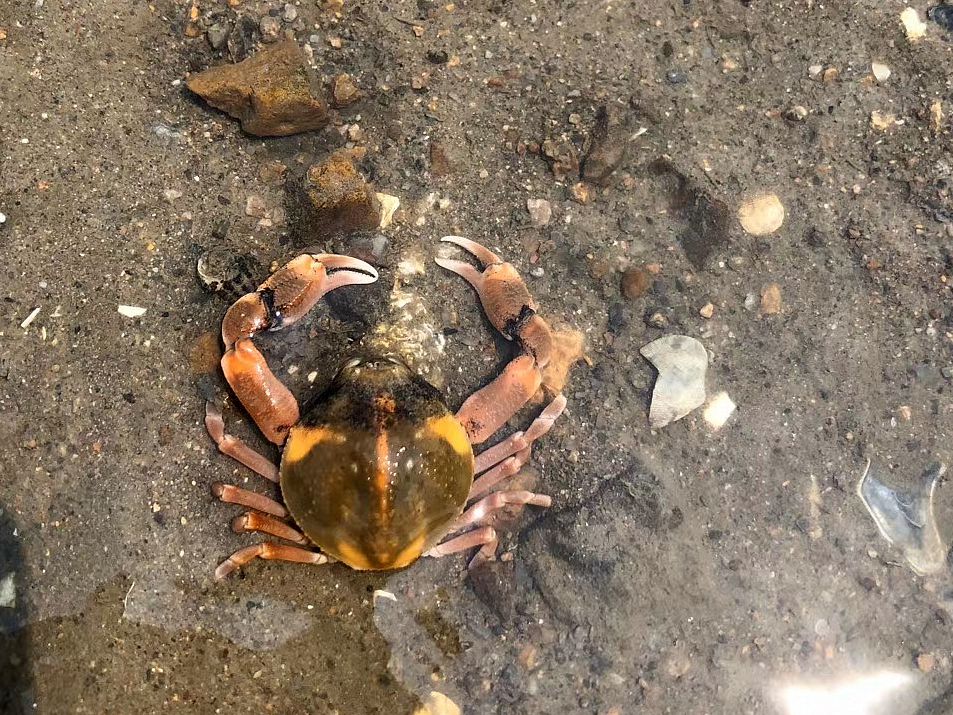 豆蟹种类很多,豆蟹亚科是主力军,共计220多种左右,其余亚科仅90余种。渤海湾有中华豆蟹,近年来已入侵黄海,我国海域还有隐匿豆蟹、海阳豆蟹、青岛豆蟹等等,上图中的是南方海域常见的胀腹豆蟹。对于我等门外汉来说,知道它们是豆蟹就已经算“学识渊博”了,鉴定到种需要看头胸甲的形状、螯肢、步足及指节的长短和形状等细微特征,这是几乎不可能完成的任务,不费那个神也罢。