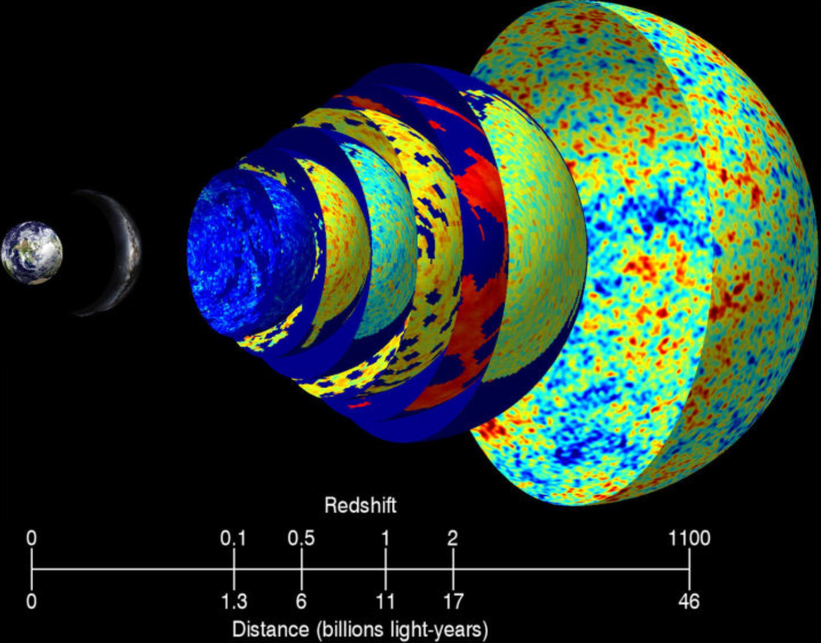 所以人类观测到的世界就到此为止,现在观测到最早的宇宙就是微波背景辐射。