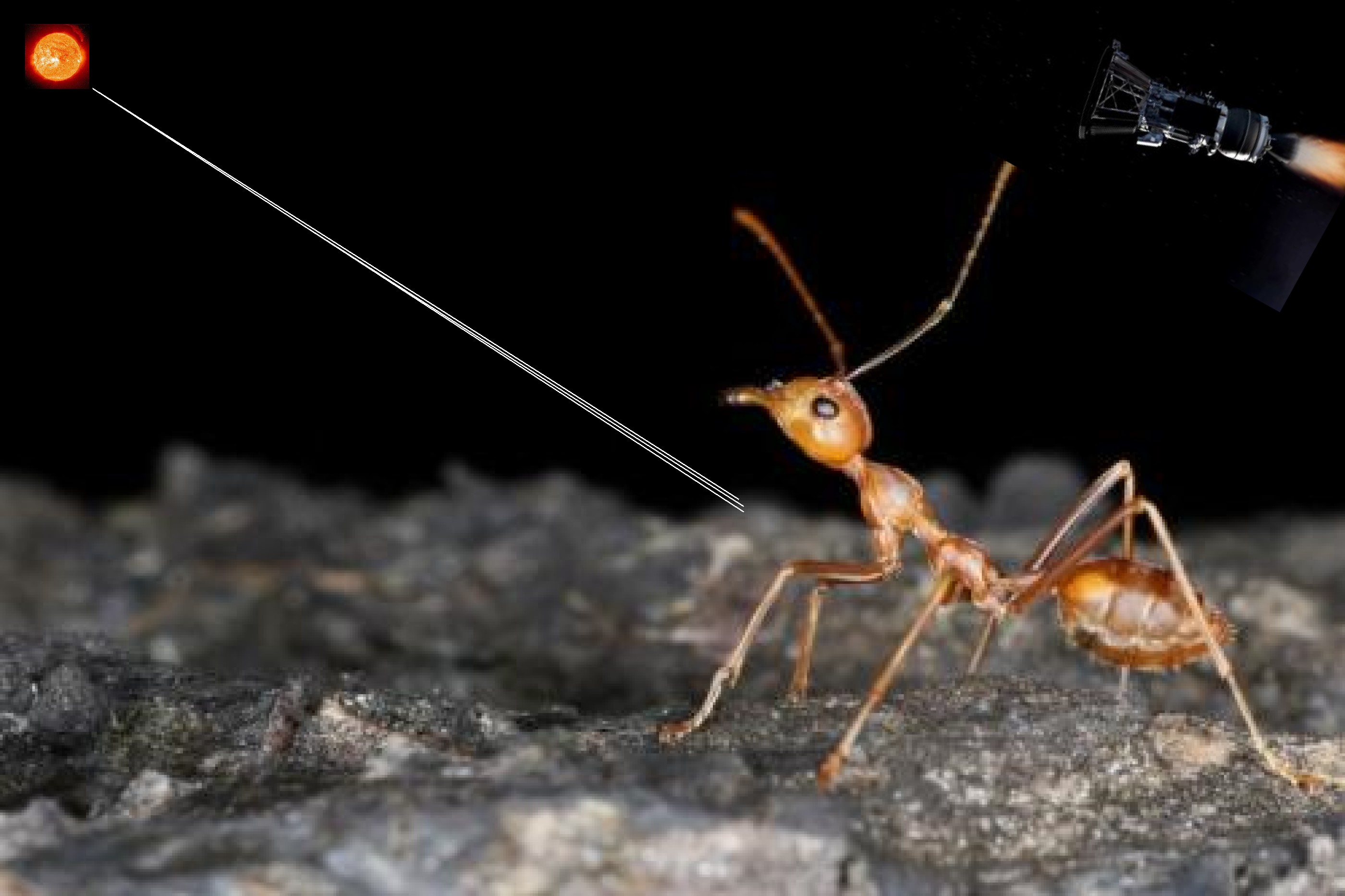 蚂蚁爬到太阳去,当然不能一直跑,这样会累死的。因此我们可以让它们一边观光一般散着步去。蚂蚁的散步速度大概在0.01m/s,这种速度爬到太阳需要多久呢?我们来算一下。