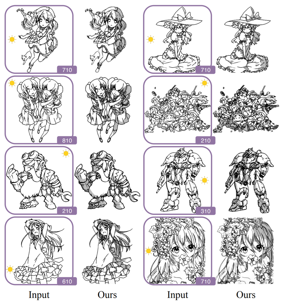 凡有光线,必有阴影。 所以,就算同一张脸同一块布,也有明暗交替,从来不是一成不变。 摄影师直接借用真实的光影就好,但漫画师借不到光,只能靠想象。毕竟线稿是苍白的,手动打上合适的阴影,画面才会立体,才会有光亮。 上《少女新娘物语》,下《寄生兽》同人漫丨森薰 & Banana Fish 这道工序并不简单,考验画师对空间的理解,萌新常常花大把的时(tou)间(fa)来调整阴影;就算有了经验,上阴影依然是一项费时费力令人头秃的活动。 不过现在,漫画家(的助手)们有理由期待一个有头发的未来了。因为,打阴影已经不是人类的专属技能,下面这个妹子的阴影,就是一只AI的手笔: 图丨参考文献1 只要为AI指明光源的方向,画面便有了光影错落。它仿佛还看得出花瓣的边缘,看得见叶子的脉络。 除此之外,它也可以给动画上阴影,画面自然流畅: 给动画上阴影,素材来自克劳斯《圣诞节的秘密》丨参考文献1 这只技艺精湛的AI,来自马里兰大学巴尔的摩郡分校的郑清元和小伙伴们,登上了计算机视觉顶会CVPR 2020。 谁还没有空间想象力了 像开头提到的那样,打阴影靠的是对空间的理解。 可漫画线稿是2D的,AI要怎么看出3D空间来?需要修炼空间想象力。 曾经,有大前辈用物体的2D轮廓和3D渲染模型做成一对数据,训练AI去想象2D线稿的3D形状,再加上写实派的阴影: 大前辈Sketch2Normal丨参考文献2 不过,漫画有时并不那么写实,这里AI首先要学的是单色阴影,不渐变的那种。于是,研究团队想找到一种更合适的方法。 既然,人类能依靠画面的光影来判断物体的3D形状,应该也可以利用漫画家已经打好的阴影,训练AI想象3D形状的能力。 当然,下面这样的成品不便当做训练数据,因为它不光打了阴影还上了色,AI分不清哪里是阴影,哪里是物体本身的颜色,会困惑的: 两仪小姐姐的头发和腰带已经有了颜色丨《空之境界》 相比之下,研究人员们机智地选择了Toshi老师著名的阴影教程。那里,有打上阴影前后的对照,人物有各式各样的姿势和朝向,还有不同的光照方向。 光线与阴影丨Toshi 训练数据集里,每张线稿都有它对应的阴影(Toshi老师画的),以及阴影对应的光源方向(手动标记),三者合起来算是一个样本。 左为线稿,中为阴影,右为光照方向丨参考文献1 数据集有了,它要调教的是怎样一只AI?阴影生成器分成两部分:第一部分叫做形状网络(shape net),负责给一张线稿编码3D空间信息;第二部分叫做渲染网络(render net),根据编码出的3D空间信息来生成阴影。每输入一个线稿和一个方向,就输出一个阴影。 打了阴影之后,还有一个判别器负责检查它生成的阴影真不真实。最初的判断依据,就是训练集里的那些样本,随着生成器不断生成新的样本,判断力也会不断升级。判别器越来越难被骗,生成器就要打上更逼真的阴影,才能继续骗过那双火眼。 终于,生成器在判别器的鞭策之下,生成的阴影自然了起来: 成果展丨参考文献1 肉眼可见,它获得了一些有用的技巧。比如,参考已经存在的各种线条,不论头发还是衣服的褶皱: 不要观察欧派(误)丨参考文献1 比如,光在侧面的时候,阴影打给了半边脸,刚好以鼻子为界: 欧派隐身了(误)丨参考文献1 更重要的是,当光照的方向连续变化,AI生成的阴影也在连续变化。注意,在训练数据集里,光照方向只有离散的26种,但AI依然学会了给更多不同的光照方向打阴影。 生成单色阴影之后,只要把不同光照方向的阴影合成起来,还能拥有渐变的阴影: 放大看,甚至可以有网点 (d)丨参考文献1 另外,就算画里的主角突然跑起来,AI一样可以招架: 这让人想起了光影能力者新海诚。虽然,现在AI的能力还停留在给人物上阴影,离把人物放进背景、放到更多的人物中间,可能有很长一段路;但假如有一天,动画的阴影可以交给AI来上,省下的时间拿去生产更多大作,那画师还是会秃头,想想都觉得兴奋呢。 躲避夷族的追击丨《追逐繁星的孩子》 打完阴影了然后呢 问题来了,就算有一天真的不用手动上阴影,还是要手动上色吧,就算黑白漫也一样。 那样的话,就等着上色AI也进化到不用人类上手的那一天吧。 其实也不会太远了,因为半自动的上色AI已经出现了。比如,来自我国的Style2Paints,目前进化到了第四代(最新版本v4.5)。不加任何手动调色,便能得到这样的效果: 图丨参考文献3 稍微调教一下下,就获得了更加令人心旷神怡的作品: 素材来自《俺は、八乙女一華が苦手だ》丨柚木'N 之前因为网页版游玩人数太多,官方宣布服务器撑不下去了,现在Style2Paints又以PC版的身份重生,想必是个生命力更强的变体。 看来,不论是上阴影还是上色,不论是漫画本子还是动画,一个高产的美好世界,仿佛就要来了。 参考文献 [1] Zheng, Q., Li, Z., & Bargteil, A. (2020). Learning to Shadow Hand-drawn Sketches. arXiv preprint arXiv:2002.11812. [2] Su, W., Yang, X., & Fu, H. (2017). Sketch2normal: deep networks for normal map generation. In SIGGRAPH Asia 2017 Posters (pp. 1-2). [3] Lllyasviel. (2019, December 18). lllyasviel/style2paints. Retrieved from https://github.com/lllyasviel/style2paints 作者:栗子 编辑:odette 鸣谢:郑清元团队,八云 本文来自果壳,未经授权不得转载. 如有需要请联系sns@guokr.com
