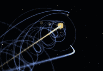 这两个速度相对太阳来说,也只是起飞时达到的初速度,而飞高了,速度就并不需要那么快了,距离太阳越远,所需要的速度就越小。比如到了地球这个位置,所需要的环绕速度约29.8km/s,就是现在地球的公转速度。所以地球既不会掉向太阳,也飞不走。而到了距太阳1光年的边缘地带,太阳引力已经非常微弱,根据计算,只需要每秒约168米的速度就可以逃逸了。