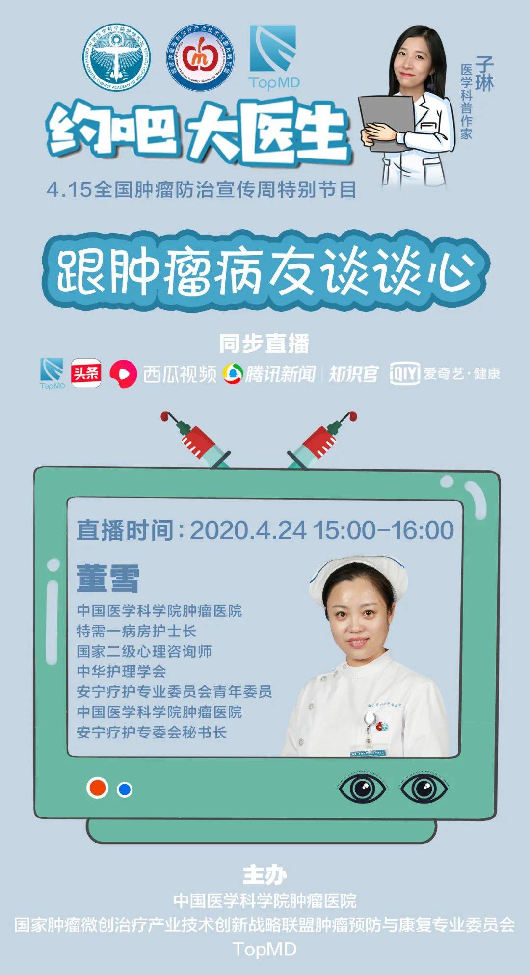 本期直播由中国医学科学院肿瘤医院、国家肿瘤微创治疗产业技术创新战略联盟肿瘤预防与康复专业委员会、TopMD联合主办,于2020年4月24日全国肿瘤防治宣传周期间在TopMD、腾讯新闻、今日头条、搜狐健康、爱奇艺等平台同步直播。我们现将直播的精华部分进行了整理,共2集,今天播出第(1)集,请将此重要内容转发给更多有需要的肿瘤病友!