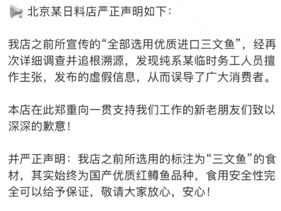 由于确诊病例的流行病学指向新发地牛羊肉批发大厅的冰鲜三文鱼摊位,因此该大楼暂时封闭,京深海鲜也关掉了,各大商超紧急下架三文鱼,于是有了下面这张图。