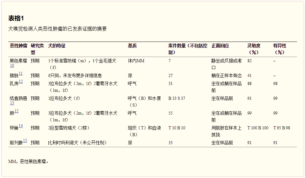 现在那些经过指定训练的狗狗们已经能从大便样本中检测结直肠癌;能从呼吸中检测肺癌;从血液样本中检测卵巢癌;从尿液样本中检测前列腺癌。并且也一直保持着很高的准确率。