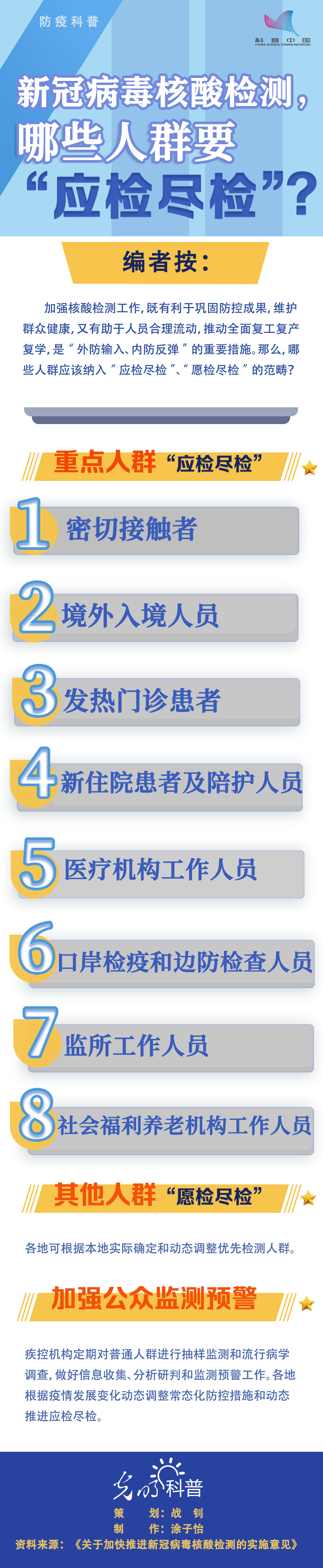 新冠病毒核酸检测,哪些人群要“应检尽检”?
