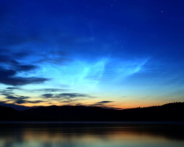 夜光云又被称为极地中气层云,当它们从外层空间被看见,就被称为“夜耀云”,从地球上看见,就称为“夜光云”。夜光云看上去有点像卷云,但比卷云薄很多,主要类型有面纱型、条带型、波浪型和漩涡型。