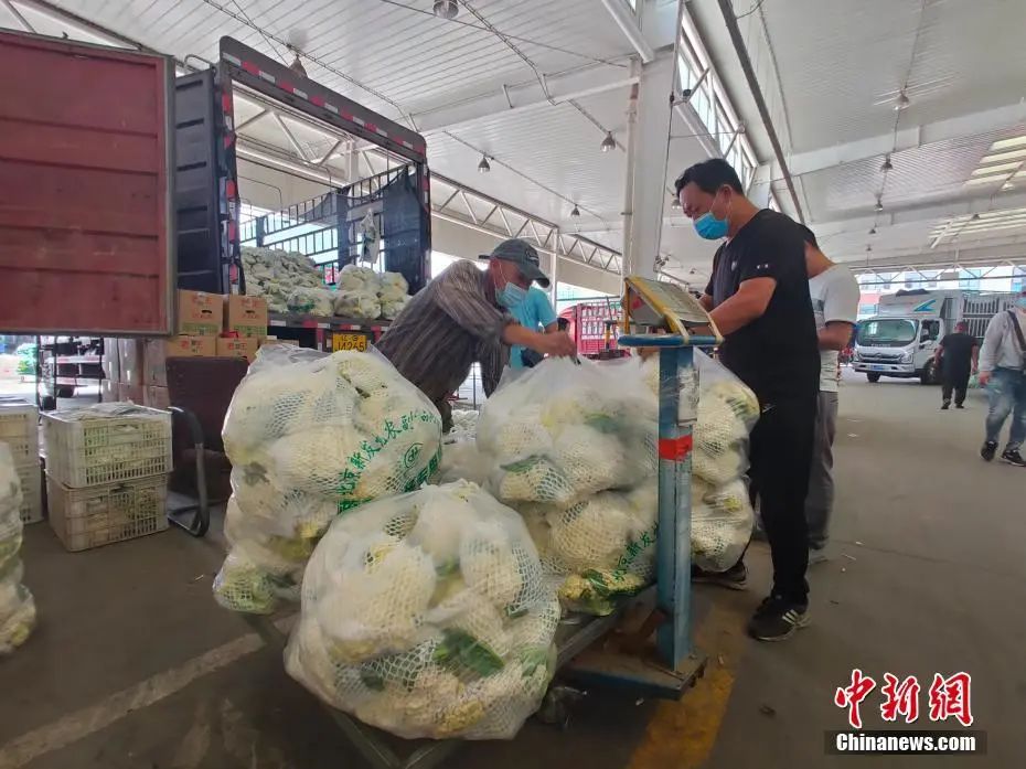 6月16日,河北新发地市场内,采购人员正在进行蔬菜交易。中新社记者 王天译 摄