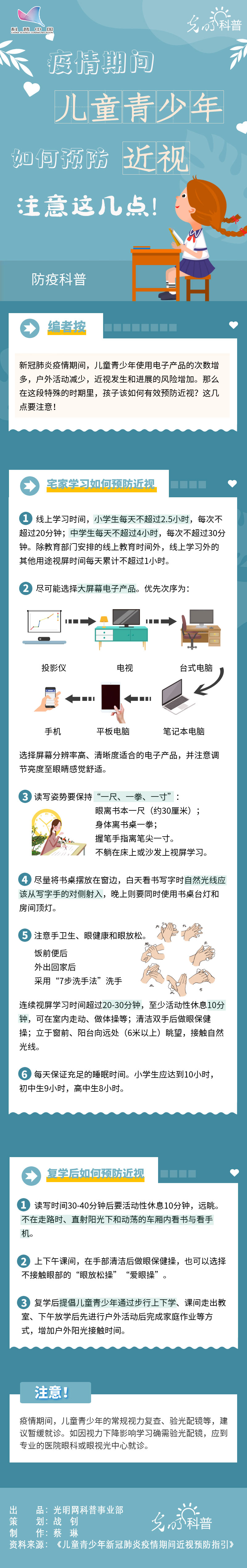 【防疫科普】疫情期间儿童青少年如何预防近视?注意这几点!