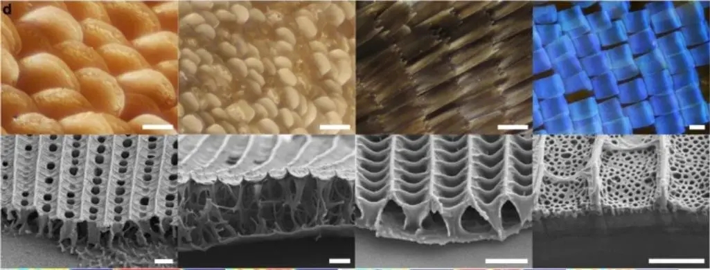 小红蛱蝶(Vanessa cardui) | Jean-Pol GRANDMONT/Wikipedia 蝴蝶翅膀也怕热 有些人可能会觉得,蝴蝶翅膀就像指甲或者羽毛一样,是由一些没有生命的组织构成的,但事实并非如此。在蝴蝶的翅膀上,也有很多充满生机的活细胞组织存在,这其中包括输送着气体与血淋巴的脉管系统,以及各种神经感受器。除此之前,在一些雄性蝴蝶的翅膀上还存在着形态各异的发香器(androconial organ),它们可以释放出信息素,用来吸引伴侣。 在对蝴蝶翅膀进行显微观察时,研究者们还发现了一种有趣的结构——他们将其称为“翼心”(wing heart)。“翼心”像泵一样收缩,以每分钟几十次的速率跳动着,输送着被称为血淋巴(hemolymph)的昆虫血液。 褐背青小灰蝶(Parrhasius malbum)翅膀中跳动的“翼心”结构 | C. Tsai et al 而所有这些活着的组织,都需要适宜的温度才能正常工作。蝴蝶们需要通过晒太阳等方式保持温暖,但蝴蝶翅膀的热容很小,如果晒过头就很容易变得过热。蝴蝶们有什么方法能保护翅膀上的活细胞不被“烤熟”吗?它们会如何为翅膀散热?这正是研究者们想要知道的。 如何给蝴蝶翅膀测温度? 要想知道这一点,首先需要知道在太阳的照射下,蝴蝶翅膀温度究竟会如何变化。但给蝴蝶“量体温”可不是那么容易的事情。 蝴蝶翅膀的热容很小,也就意味着直接接触的测量方法很容易改变它的温度,导致测量不准。那么利用红外热成像进行非接触的测量呢?蝴蝶翅膀对红外光是半透明的,普通的热成像仪也无法得出准确的结果。 在红外相机下,蝴蝶翅膀显示出美丽的图案,其中明亮的部分更擅长散发热辐射,但这张图并不能直接体现翅膀的温度 | NANFANG YU AND CHENG-CHIA TSAI 为了解决这个问题,研究者们对蝴蝶进行了红外高光谱成像,分别确定了翅膀各部分透射、反射和发射红外光的情况。这样一来,再对热成像进行分析,就能得出蝴蝶翅膀上准确的温度分布。 结果显示,蝴蝶的翅膀确实控温有方:当被模拟阳光的光线照射时,“活组织”的部分相比周围的“死组织”温度总是更低一些。 特别的散热结构 为什么会有这样的温度差异?研究人员发现,蝴蝶翅膀上存在活组织的部分有更高的的热发射率(Emissivity),也就说,它们更擅长用热辐射的方式散发热量。热发射率的差异与几丁质层的厚度以及不同类型鳞片上特殊的微观结构有关。 蝴蝶翅膀不同部位覆盖着结构不同的鳞片,这影响着局部的散热能力 | C. Tsai et al 但即使如此,蝴蝶仍可能会面对过热的情况。这时候,蝴蝶翅膀上的温度感受器会感知并过热并避开热源。研究者们发现,将一束会导致局部升温的激光照射在蝴蝶翅膀“非生命”的区域时,蝴蝶不为所动;而如果照到翅脉等活组织存在的区域,那么只要升温达到了一定幅度(“触发温度”大约在42°C左右),蝴蝶就会调整翅膀躲避光斑,甚至拍打着翅膀飞离热源。 一只翅膀局部被激光加热的被试蝴蝶(红外热成像) | C. Tsai et al 蝴蝶翅膀不仅是活的,而且还自带过热检测与散热系统。蝴蝶鳞片中帮助散热的结构,或许也可以用于设计新型的辐射冷却材料。 参考文献: [1] https://www.nature.com/articles/s41467-020-14408-8 作者:ARU 编辑:窗敲雨 本文来自果壳,未经授权不得转载. 如有需要请联系sns@guokr.com