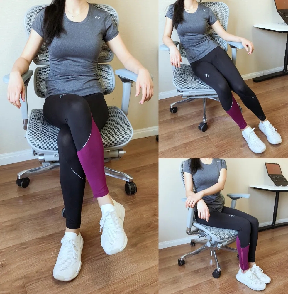天然构造挺好,别摆歪了 最好的坐姿是最自然的姿势,“自然”不是怎么舒服怎么来,而是顺应人体的天然构造。这样肌肉骨骼压力小,不容易出现酸痛和损伤,还能保证工作时手臂活动灵活[1, 2]。 每个人的最佳姿势都会有细微差别,下面是适合多数健康人长时间坐着的姿势。如果已经出现肌肉骨骼的问题,要遵守医生的建议。另外,姿势再正确,维持时间太长也会疲劳,累了就起来活动一下[3]。 放平脚,减少腿脚酸 调整座椅高度,保证全脚掌平放在地面上。座椅太高时脚会悬空或踮起,需要调低高度或在脚下垫踏板。座椅太低,坐下后会屈膝勾脚,也不舒服。 左图正确,右图悬空、踮脚及勾脚丨作者供图 2 压力臀腿均摊,避免压得痛 大腿与小腿之间的角度在95°至100°比较舒服。这时大腿与臀部均匀承担身体重量,不会使某一段被压得难受[4]。 脚踩太高,部分大腿离开椅面,压力集中在臀部丨作者供图 3 脊柱摆好,缓解腰痛 自然站立时脊柱不在一条直线上,而是各段都略有曲度。坐下后,基本保持这个弯曲程度最舒服(腰椎段可略伸直)[1]。 正常站姿下脊柱各段曲度丨wikimedia 最常见的错误坐姿是像虾一样弯着腰,这样会明显增加脊柱及其周围肌肉的压力。但矫枉过正,挺成一张弓,同样可能腰痛,稍稍挺起的中间状态最好[5, 6]。 弯腰伸头→坐直丨作者供图 过度弓背→坐直丨作者供图 腰挺起来了,那胸该不该挺更直呢?胸椎段自然状态下是有点弯的,驼背不好,但完全掰直也不行,还是要保持稍弯一点的状态[2]。 再向上是颈椎,弯曲方向与腰椎一致。过度低头,颈椎会折向相反方向,容易出现头痛及肩颈痛。并且,头的重量相当于体重的七分之一,向前伸头会让颈部压力升高3~5倍[7]。 脊柱曲度摆好了,上半身整体的倾斜角度也得调整好,稍前倾一点最合适[8]。 过度前倾→过度后倾→适当角度丨作者供图 4 胳膊有支撑,肩腕不累 想要减少肩颈酸痛,摆好脊柱是前提,另外还要避免耸肩和垂着胳膊。把肘部与小臂支撑在桌子或扶手上,可以帮助肩膀放松。打字时,保持大臂与小臂之间的角度在100°左右,肩颈的压力较小[4]。 另外,有人把笔记本垫高以防低头,导致打字时手腕一直使劲抬着。这样手腕和肩都容易不舒服,手的活动也不自由,保持手、腕和小臂在一条直线上最安全[9]。 上图正确,下图肘关节夹角过小及手腕上抬丨作者供图 5 尽量左右对称 动作左右不一致,肌肉骨骼的受力就不平均。时间长了,身体可能定格在扭曲的状态,或因为肌肉拉力不平衡而出现酸痛。 左图翘脚、右图倾斜及扭转都不好丨作者供图 设备不用贵,但得选对放好 用心摆好的姿势,可能换张椅子或挪下电脑,位置就变了。没必要为了坐姿正确,去买齐昂贵的人体工学设备,但也不要被桌椅和电脑破坏姿势。 椅子靠背和扶手能省力 久坐不起时,尽量选有靠背的椅子。靠着能减轻60%脊柱压力,肌肉也比较放松,不那么疲劳[5]。如果坐的时间短,而且希望借机锻炼,可以选择没有靠背的凳子,用肌肉收缩替代靠背的支撑作用。 在不同种类的靠背中,贴合脊柱自然曲度的最舒服。如果椅子靠背很直,可以在腰后加一个薄垫,支撑腰部。 没有桌子支撑手臂时,椅子扶手可以帮助承担重量,减轻肩颈的压力。 2 显示器与键盘 用笔记本或平板电脑办公时,经常会为了看清显示器而低头驼背。用支架把电脑垫高,保持视线基本平行显示器上缘,更容易维持好坐姿[10]。 但垫高电脑会让键盘也升高,打字时手腕压力增大。想要完美解决,只能再连接一个键盘放在桌面(最好再配个腕托),或者电脑在桌面放平,连接一个较高的显示器。 当然,剁手并不能解决所有问题,再好的设备也不能防止人坐错,最重要的还是时时检查自己的姿势。 再贵的人体工学椅也不能防止个别人瘫倒丨作者供图 参考文献: [1] Noll M, Candotti CT, da Rosa BN, et al. High prevalence of inadequate sitting and sleeping postures: a three-year prospective study of adolescents. Sci Rep. 2017;7(1):14929. [2] Claus AP, Hides JA, Moseley GL, et al. Is 'ideal' sitting posture real? Measurement of spinal curves in four sitting postures. Man Ther. 2009;14(4):404-408. [3] Bontrup C, Taylor WR, Fliesser M, et al. Low back pain and its relationship with sitting behaviour among sedentary office workers. Appl Ergon. 2019;81:102894. [4] Elżbieta Szczygieł, Katarzyna Zielonka, Sylwia Mętel, et al. Musculo-skeletal and pulmonary effects of sitting position – a systematic review. Annals of Agricultural and Environmental Medicine. 2017;24(1):8-12. [5] Rohlmann A, Zander T, Graichen F, et al. Measured loads on a vertebral body replacement during sitting. Spine J. 2011;11(9):870-875. [6] Albarrati A, Zafar H, Alghadir AH, et al. Effect of Upright and Slouched Sitting Postures on the Respiratory Muscle Strength in Healthy Young Males. Biomed Res Int. 2018;2018:3058970. [7] Ailneni RC, Syamala KR, Kim IS, et al. Influence of the wearable posture correction sensor on head and neck posture: Sitting and standing workstations. Work. 2019;62(1):27-35. [8] Waongenngarm P, Rajaratnam BS, Janwantanakul P. Perceived body discomfort and trunk muscle activity in three prolonged sitting postures. J Phys Ther Sci. 2015;27(7):2183-2187. [9] Ming Z, Zaproudina N.Computer use related upper limb musculoskeletal (ComRULM) disorders. Pathophysiology. 2003;9(3):155-160. [10] Yu Z, James C, Edwards S, et al. Differences in posture kinematics between using a tablet, a laptop, and a desktop computer in sitting and in standing. Work. 2018;61(2):257-266. 作者:代天医 编辑:odette 本文来