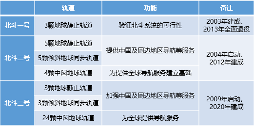 中国北斗系统自1994年开始部署,先后完成三代建设,包括为中国境内提供服务的北斗一号,为亚太地区提供服务的北斗二号,以及为全球提供服务的北斗三号。