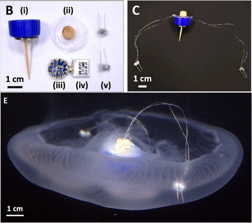 最近,来自加州理工和斯坦福大学的工程师们对水母做了奇怪的事情:通过简单的“电子改装”,它们让水母游泳速度大增,提高到了平时的三倍。这些改装水母还登上了《科学进展》期刊的封面[1]。
