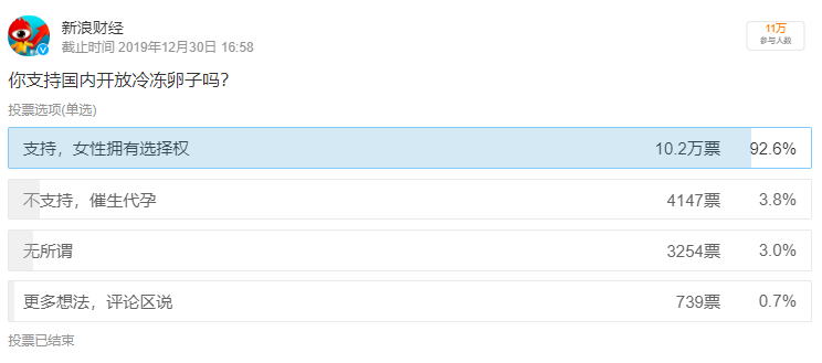 无论是主流媒体发起的投票,还是新兴自媒体平台的调查,网友表现出了一面倒的态度,支持枣枣、支持国内开放冻卵。然而,需要注意的是,这不单单是一个女性主义的议题,更涉及到技术的应用。女性是否拥有选择的权利是一回事,冻卵这项技术是否是一个好选项是另一回事。
