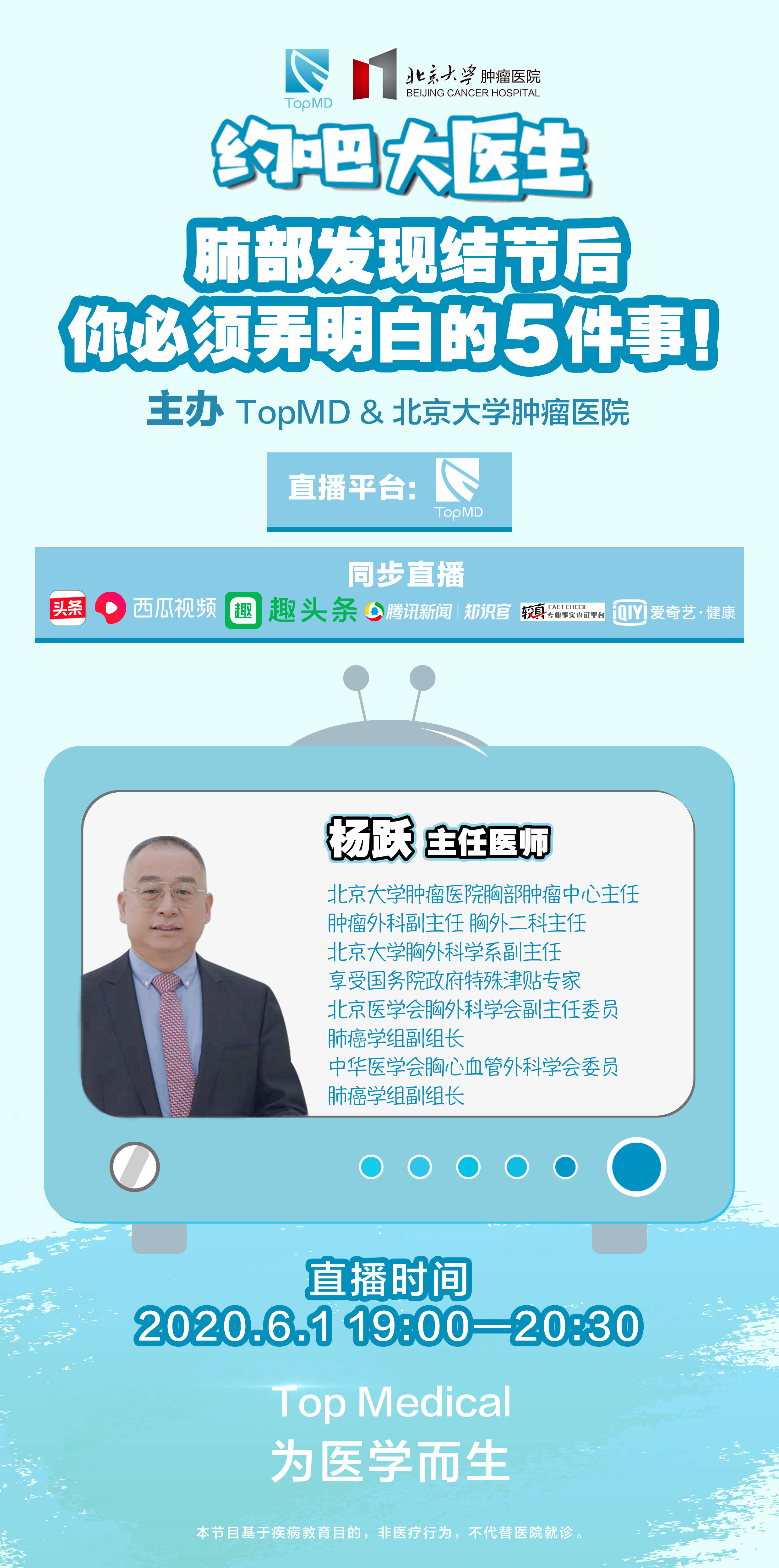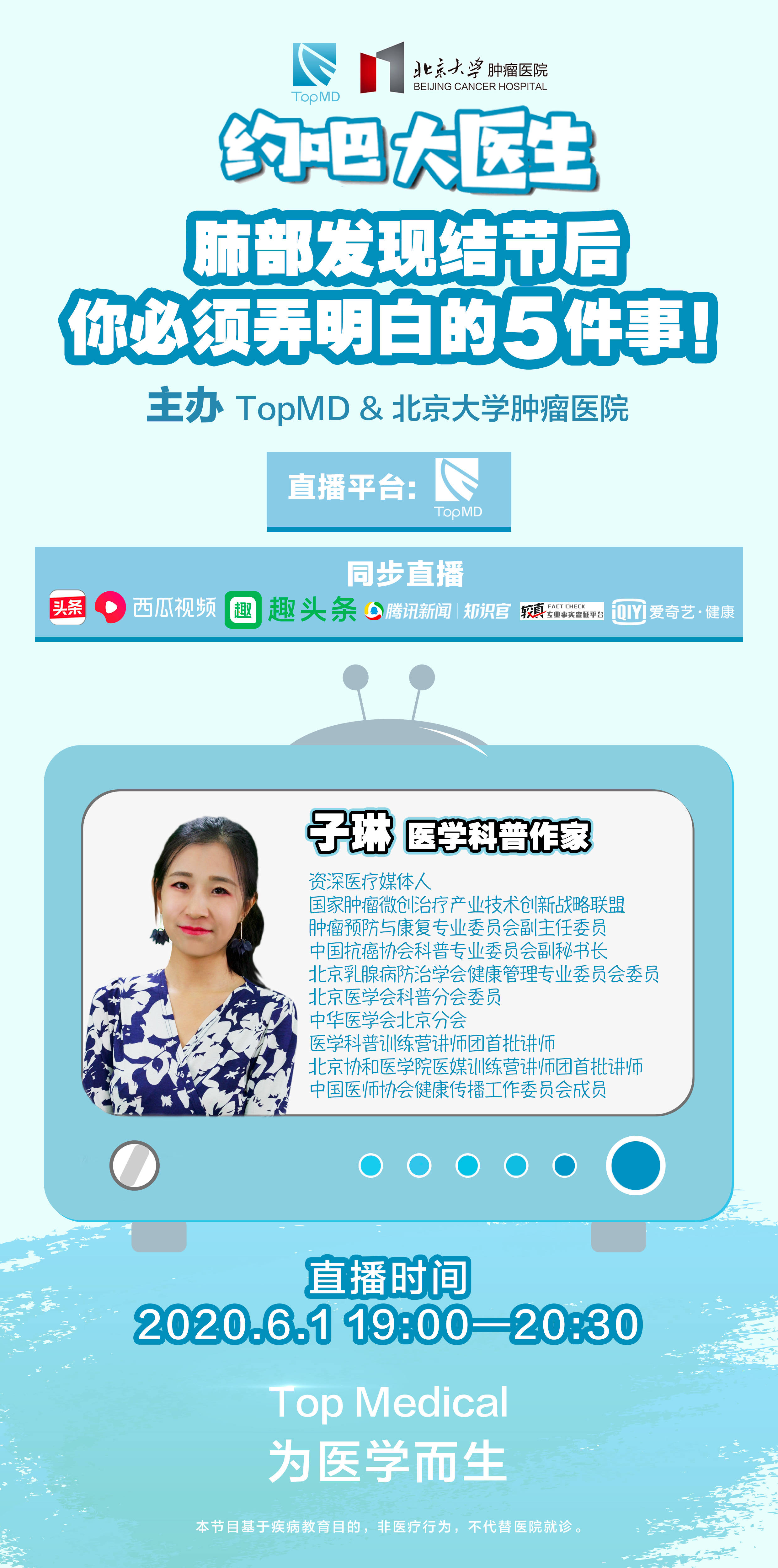 6.1日TopMD《约吧大医生》栏目举办了一场直播,这个话题是大家都非常关注的肺!结!节!“肺部发现结节后你必须弄明白这5件事”。