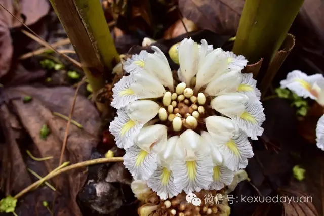 九翅豆蔻,姜科植物,果实具开胃消食的功效。九翅豆蔻的花,通常开三至十多朵,环线排开,形成异常精美对称的形状。姜科植物是热带最拉风的植物类群之一,有的开花在枝头,有的开花在半腰,如九翅豆蔻则开花在地表,开花方式多样,令人好奇。